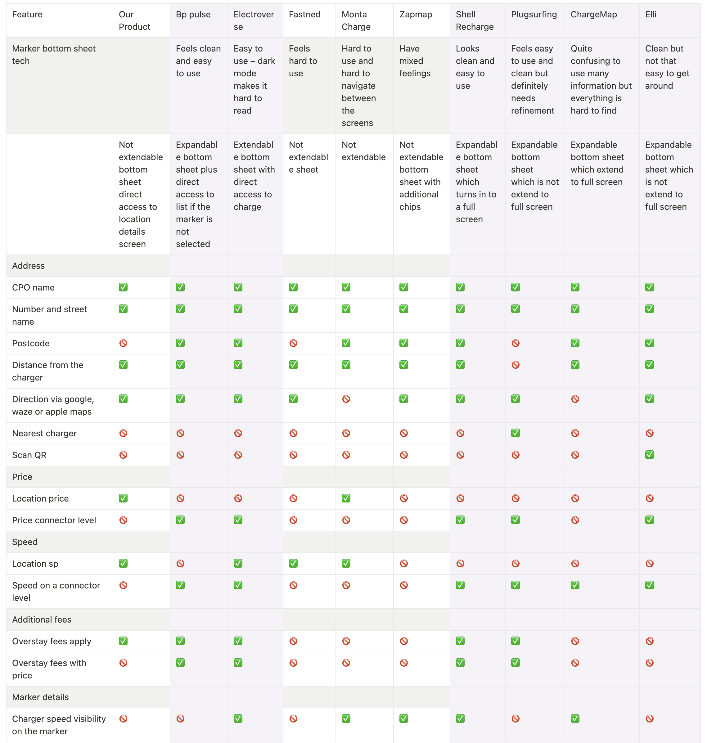 Team: Presented the research findings and potential technical solutions to the engineering team. Together, we refined these solutions, setting backend specifics such as the distance and the number of charger markers shown near the searched address. We agreed on the following: