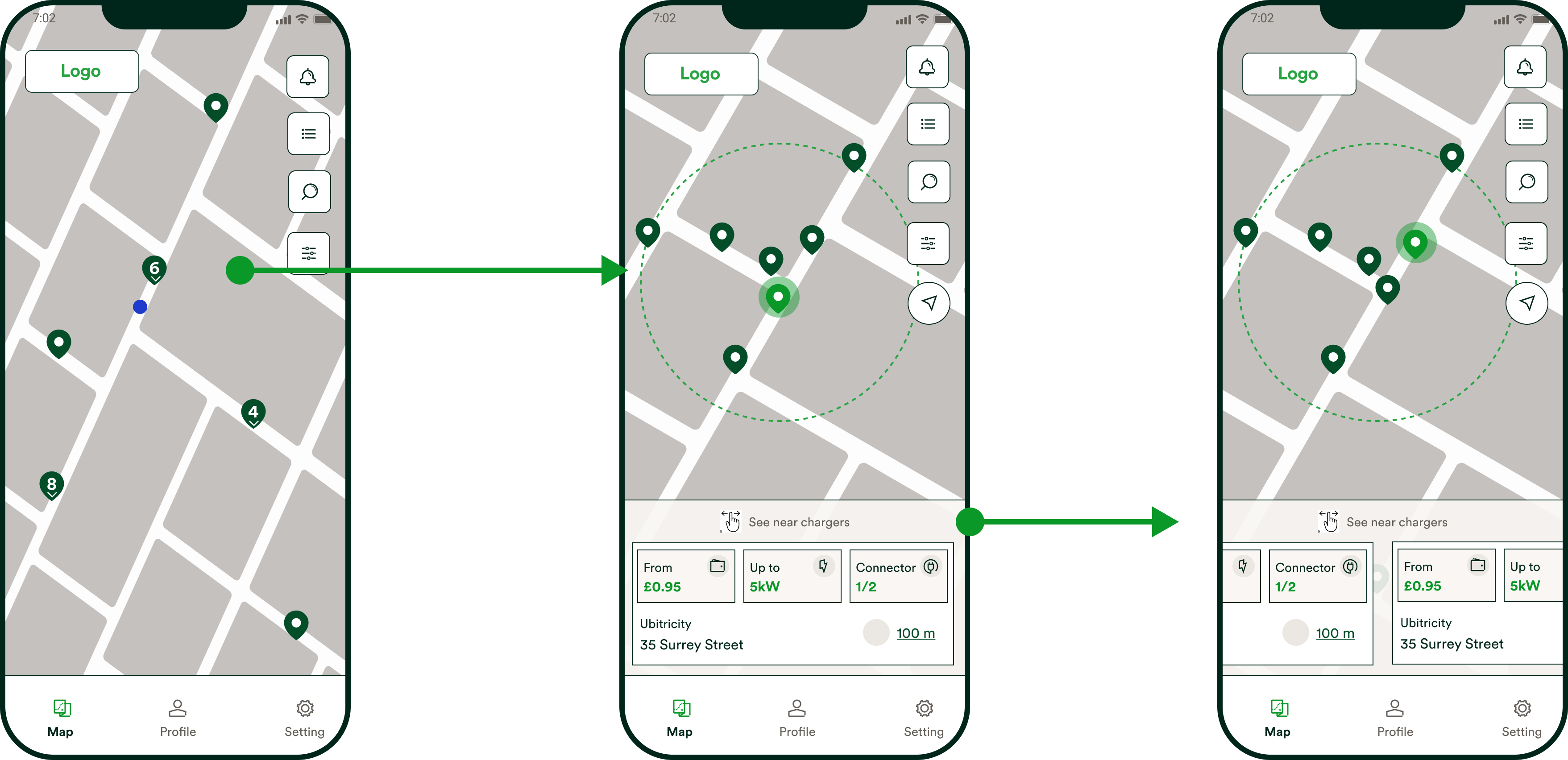 Users face difficulty finding the right public charger as they often need to tap between markers to gather crucial information about the chargers and their locations. Our data reveals that this user flow is cumbersome and inefficient, with users repeatedly switching between the map and the location details screen.