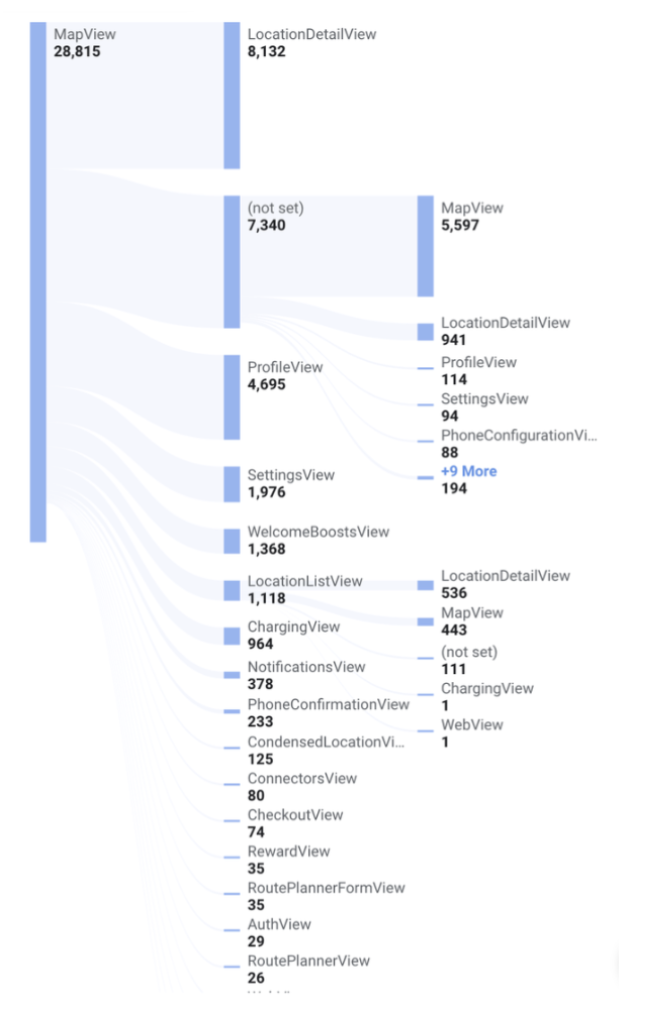 Usage Data: From 28,815 users who visited the MapView, 1,118 visited the LocationListView, making it the 6th most visited screen.